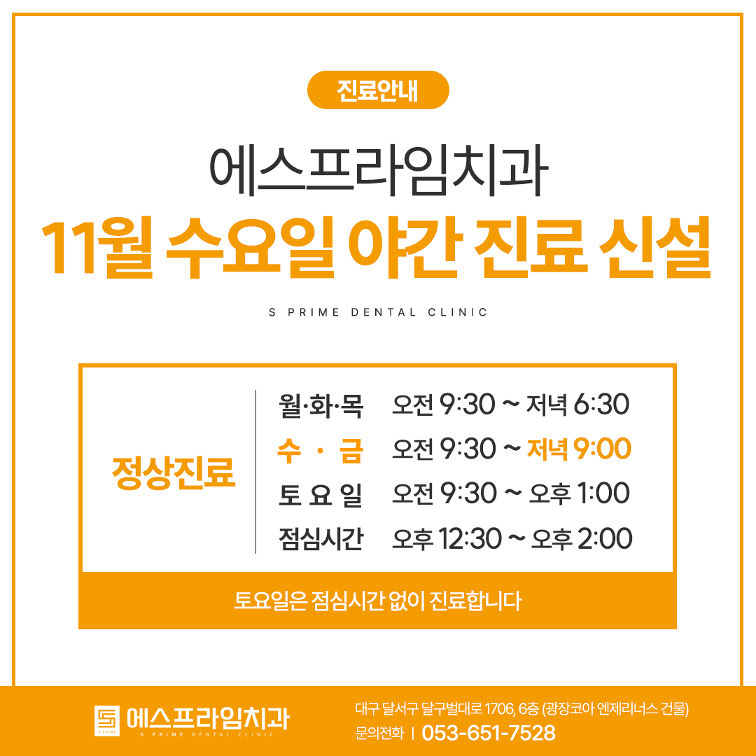 수 · 금 ㅣ 09:30~21:00 (야간진료)
